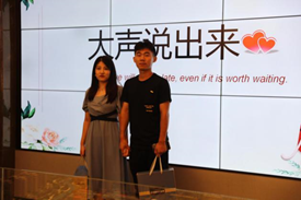 活动最后的告白环节,主持人邀请收获男生纸鹤最多的女生上台,同时请心仪女生的男嘉宾依次上台进行告白,最终男嘉宾的成功告白将本次活动气氛推向高潮,整场活动在热烈、和谐、幸福的氛围中画下圆满句号。